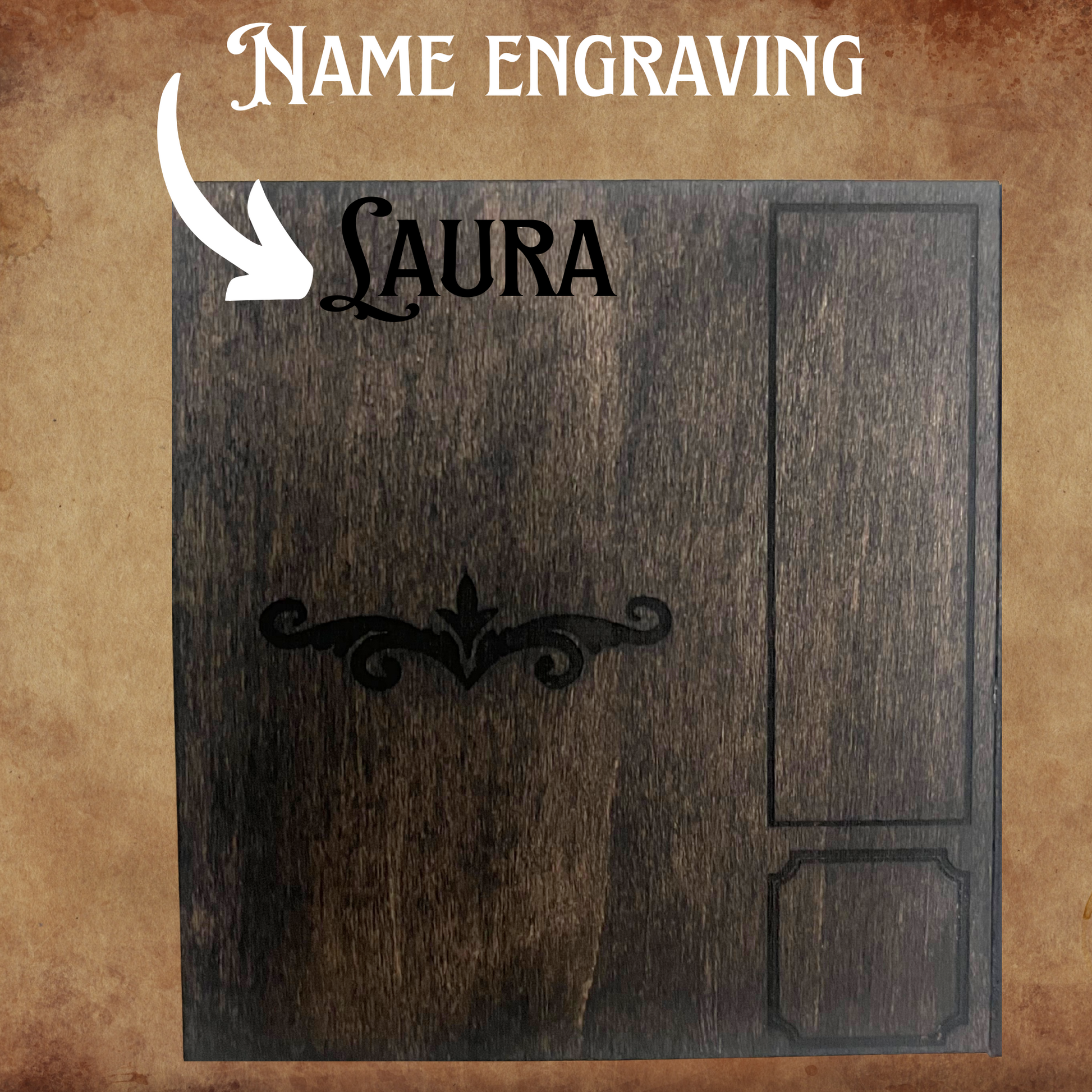 Step into a world of wonder with this fantasy-inspired mini bookshelf desk organizer. Made from black wood and etched with elegant engravings, this piece blends storybook charm with functional design. The front shelves are filled with miniature books—perfect for a tiny wizard, elven scholar, or lorekeeper—while the top compartment (3.9” x 2.6”) stores your writing or crafting tools.